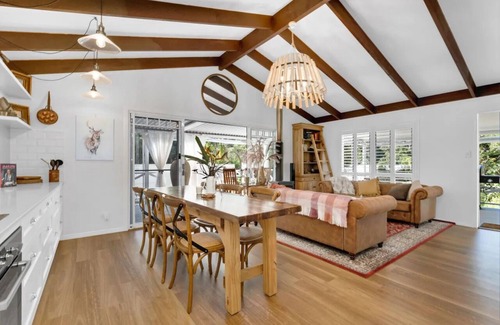 A peaceful three-bedroom, three-bath escape designed for couples and small groups of friends. Hidden behind a private gate and framed by flowering gardens where daisies bloom and seasonal fireflies flicker at dusk, the cottage feels secluded yet is only one-kilometre to Gallery Walk and just minutes from Tamborine Mountain’s famed rainforest trails.