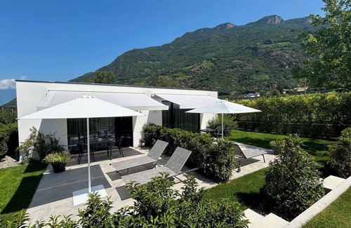 The flat impresses with its fantastic view and beautiful garden. King-size bed, fully-equipped bathroom and state-of-the-art kitchen; can accommodate 2 people. Wi-Fi connection, smart TV, underfloor heating and air conditioning. Breakfast, on request, offers many homemade products with a wide choice between sweet and savoury. A charging station for electric vehicles is available in the private car park. Public transport connections are within walking distance. A storage room for bicycles and equipment is available for guests. A table tennis table and table football are available for your entertainment. The electricity for this facility is generated by photovoltaic panels. The building is classified as KlimaHaus A. Ideal starting point for mountain tours or Montan Bike tours, to visit Bolzano and Merano or along the Wine Route