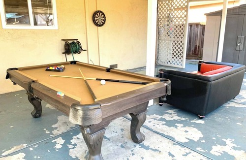 If you want to have a gathering with your friends, we have a perfect backyard patio that has a pooling table, a dartboard, and an outside dining area.