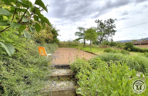 In the cherries area (Lyonnais region) self-contained gite adjoining owners' home. Ground floor: garage. 1st floor: kitchen, living room, alcove with lounge area, loan of mobile phone (deposit required). 3 bedrooms (double room, 2 connecting twin-bedded rooms). Bathroom, WC. Outdoors: balcony with views of the Coteaux du Lyonnais countryside (fruit trees are very picturesque in spring time), small unclosed & sloping garden, paved area (football table) to front. Small enclosed terrace shaded by wisteria at the back (direct access from living room). Tasting during the cherry season. Charge for pet : 6€/day/pet.