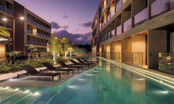 10 outdoor swimming pools are on site along with a waterslide and a 24-hour fitness center.