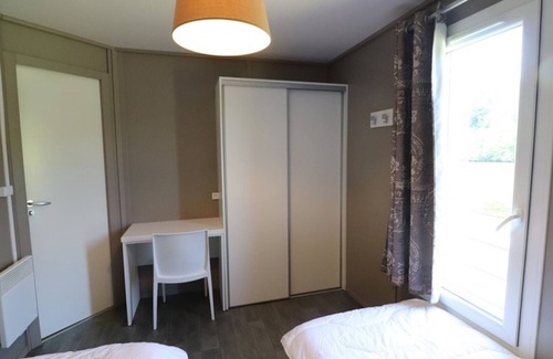 It is equipped with a fitted kitchen area, a living room with a 1-person sofa bed, flat-screen TV, a bedroom with a 160X200 bed, a bedroom with 2 90X200 beds, a bathroom and a separate toilet. Electric heating included. Options (sheet rental, towels, cleaning fee) must be reserved and paid before arrival with the reservation service. Moulin du Teil lake located opposite the chalet, currently being emptied.