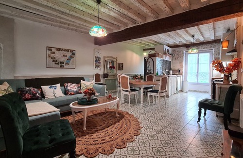 Promotion for the month of August: 10% reduction. Cottage completely renovated and brought up to date, in the town of Meung-sur-Loire, 5 min walk from the train station (about 400m) close to all shops and market, 700 meters from the castle of Meung-sur-Loire, 800 meters from the Loire and the route to Loire by bike and 30 minutes from Orléans. Come and relax in this family cottage for 8 people completely renovated in Belle Époque style. You can enjoy a private flower garden where passes the source of Mauves. The accommodation comprises on the ground floor, living room/living room with open kitchen, a living room/games room with library, a separate toilet, a master suite with cathedral ceiling with a 160x200 cm bed and a shower room private (double shower and with glass roof over the bedroom). Upstairs, a dormitory with 2 bunk beds ([hidden] 4 90x200 cm beds), a bedroom with 1 160x200 cm bed and a separate bathroom (bath, shower, double sink, wc, washing machine). A closed private garden of approximately 200m² is at your disposal. Steps can lead you to the source of Mauves with their fish and for the more adventurous among you it is possible to take a foot bath. In the garden, access to the spring (for children, under parental supervision). Large selection of books, children's toys and childcare items available (three-age stroller, travel cot, deckchair, activity mat, bath, changing table, potty, etc.). Everything for cooking: raclette machine, stone grill, waffle machine, food processor, toaster, coffee maker, kettle, dishwasher... Public parking in the street in front of the gîte or parking spaces 50 m away. Pets welcome but provide cushion and bowl. The all-inclusive rate includes: bed linen (beds are made on arrival) and towels for the stay, end-of-stay cleaning (excluding dishes and garbage cans), heating and electricity with reasonable consumption and reasonable - if the heating of the gîte is electric, you have 15 Kwh per day (the excess will be paid on site to the hosts). Vehicle rental at hyper U (15-20 min walk from the house). Holidays like at home, put down your suitcases and take out your slippers. Arrival from 4 [hidden] and departure at 10 [hidden] The all-inclusive rate includes: bed linen (beds are made on arrival) and towels for the stay, end-of-stay cleaning (excluding dishes and garbage cans), heating and electricity with reasonable consumption and reasonable - if the heating of the gîte is electric, you have 15 Kwh per day (the excess will be paid on site to the hosts). Unless stated, services such as cleaning, bed linen, towels etc. are not included in the price of this rental. If pets are allowed (information in the advertisement), charges may be applicable. Only equipment mentioned in this advertisement are present. Equipment not mentioned are not considered to be present.