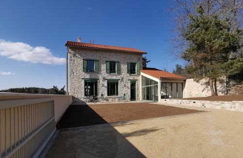 Nearby: The young gorges of the Loire, many hiking trails, the Mezenc plateaus.... The entrance to the cottage is on the same level as the living room, on the same level you will have a pleasant veranda, a bedroom equipped with a double bed, a bathroom and a toilet.