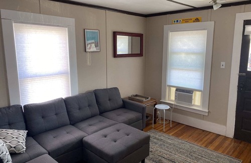 This historic home is in close proximity to anywhere you'd want to be in North Creek. Featuring two bedrooms and a one bath with tub shower; the master boasts a king size bed, while the second bedroom features a twin over full bunk bed with twin trundle to maximize your sleeping options. The large, eat-in kitchen is fully equipped and has recently been renovated. The family room is cozy, featuring a comfy sectional couch with ottoman and a 55" HD Smart TV with HULU Live provided. This unit requires one flight of stairs for access.