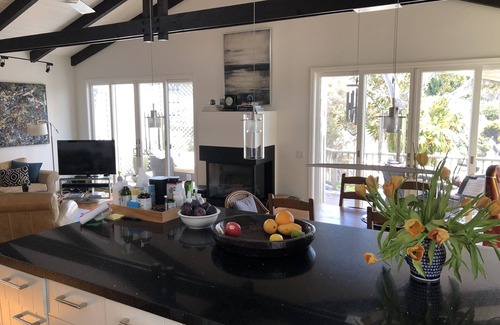 This beautiful single-family home located in San Diego's prized historic district of Mission Hills is available to rent much of November & December 2025, with many weeks still available in April & May 2026. Please check Calendar for current availability. Located at the Heart of San Diego's Uptown - this bright and airy customized home offers style and privacy for a family of 3 - 4 or two adult couples traveling together! A well-behaved pet is also welcome. The dramatic Open Floorplan boasts vaulted beamed ceilings, a switch-activated gas fireplace, comfortable Pottery Barn and Italian leather furnishings. and gleaming hardwood floors. The open Kitchen is stocked with high-end appliances and cooking tools for the chef-enthusiast. There are 2 bedrooms, separated by private hallways, each bedroom with a high quality King bed and accompanying bathroom with walk-in tiled showers. Enjoy climate-controlled mini-split air-conditioning or thermostatically controlled heating by room, plus the cozy warmth of the Living Room's gas fireplace. Out front - relax under the pergola adjacent the stone driveway which provides one on-site parking space. At the east side of the house - slide glass doors open to enjoy a very private deck terrace - an ideal spot for morning coffee or an evening glass of wine. Here one can relax and unwind under the stars - enjoying views of the city and nearby canyons. This property's central location is ideal for exploring both Uptown and bustling Downtown San Diego, 1200 acre Balboa Park, and its amazing Zoo. Historic Old Town is 5 minutes down the Washington Street hill. For those who love to walk - stroll a few blocks to upscale food markets, cheese and gelato shops, pizzerias, and specialty restaurants. Picturesque historic homes line the streets of Old Mission Hills while there are dozens of diverse eateries including the city's best bakery + coffee, just 6 blocks west in Hillcrest. If renting a car - this property is 3 minutes from Interstate 5 with spectacular Coronado Island only 10 minutes south, or popular La Jolla 20 minutes to the north. Most conveniently, one can get to San Diego International Airport in less than 10 minutes. The European owners divide their time between Germany and San Diego and take genuine pride in sharing their wonderful San Diego home while away. Our annual VRBO guests often comment how much they LOVE staying here!
