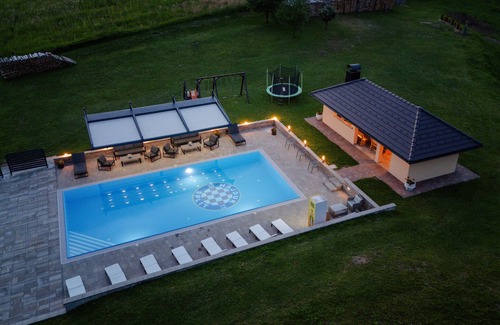 Best-rates for the Slunj house starts from $367 per night with includes Laundry, Pool, Private Pool, Wellness Facilities, Fireplace/Heating, Child Friendly, Kitchen, Parking, TV, Balcony/Terrace, Security/Safety, Barbecue/Outdoor Cooking, Internet with all other facilities. Casai.uk matches every traveler with their perfect accommodation, whether you are traveling with a group, friends, family, or pets.