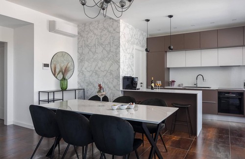 The spacious vacation home is located just 20 meters from the pebble beach on the island of Krk in the town of Malinska and is spread over several floors with space in 6 bedrooms. The house consists of two identical units on the first floor and on the second floor, so it is ideal for two families or a larger group of guests. Both units have fully equipped separate kitchens and living rooms.