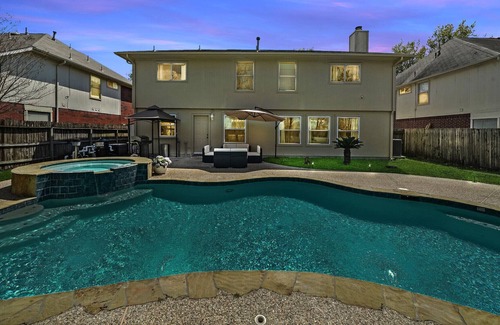 Welcome to our beautiful home w/ sparkling pool & relaxing spa! This home is centrally located w/ easy access to major Highways, an array of top dining & shopping destinations w/in close proximity & exciting Houston attractions! Our home is fully stocked, 2 stories, spacious open floor plan, natural light & boasts 3 full bedrooms, 2.5 bathrooms, a game room w/a pool table & an extra movie room w/a sofa that converts into a Queen bed. It has a phenomenal backyard w/ BBQ, lounging table, sparkling pool & spa!