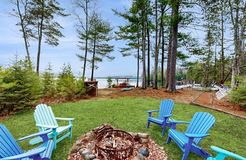 Gorgeous lakefront lodge with dock, deck, game room & firepit | House in Three Lakes, WI