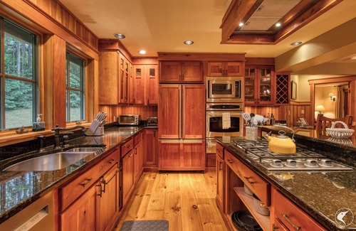 On over half an acre, guests will enjoy privacy and luxury in this 5 bedroom, 4 bathroom home. The luxury kitchen is perfect for family meals, and the great room is the perfect spot for gathering after a day exploring the Adirondacks. Wilderness Lodge is equipped with central air to provide guests the most comfortable experience in the summer. During the winter, guests will have use of the fireplace to warm up after a day on the slopes.