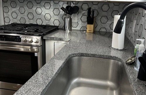 Kitchen: Stainless electric stove/oven | Refrigerator | Microwave | Dishwasher | Toaster | Drip style coffee pot | Cooking basics | Dishware & flatware | Pots & pans