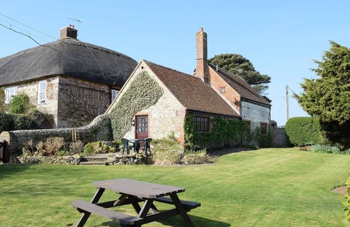 This wonderful Grade II listed cottage is adjacent to the owner’s thatched farmhouse on the edge of Brighstone, Isle of Wight. The cottage, built of Island stone, has been converted from 3 farm buildings including an old brew house and dairy. Many of the original features have been retained including exposed beams and a stunning brick and stone feature fireplace. The cottage has parking for 2 cars, a terrace, beautiful lawned garden with garden furniture and stunning views of the downs beyond.