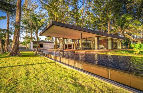 Grand Villa Noi is an architectural masterpiece. The sleek, modern villa offers the utmost privacy in a lush, tropical setting. There are 5 bedrooms and 5 bathrooms, and it can accommodate up to 10 people