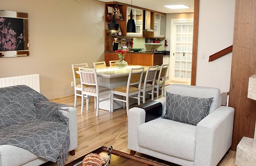 Beautiful house with 4 bedrooms and two double suites, bathroom and toilet. Sleeps up to 8 people comfortably. Central Gas, Hot water and heating in all environments. Located in the most upscale neighborhood of Gramado, Plateau next to the Rita Bier lake and the city center.
