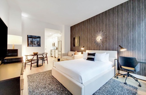 Pets are allowed in select apartments and are subject to a $500 non-refundable pet sanitation fee for one pet, $750 for two pets. Additional charges and size/breed restrictions may apply and vary by building. All pets must be approved by Furnished Quarters. Please let us know ahead of booking if you plan on traveling with a pet.