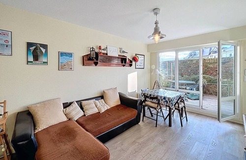 Located in a residence ideally situated in Merville-Franceville, this ground-floor apartment (with a few steps leading to the entrance) offers the perfect setting to accommodate up to four people.