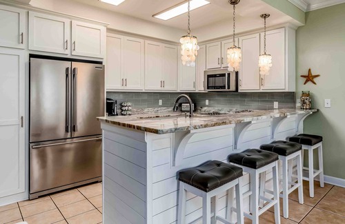 Kick back and enjoy the beautiful Gulf Coast at this stunning waterfront condo. Conveniently located on the ground floor for easy access, it is beautifully decorated throughout with recently updated fixtures and furnishings, including a gorgeous gourmet kitchen. Guests can enjoy the beach boardwalk and pools (heated and non-heated). Your private, covered patio opens out to the pool area, so you can make the most of the year-round pleasant weather.