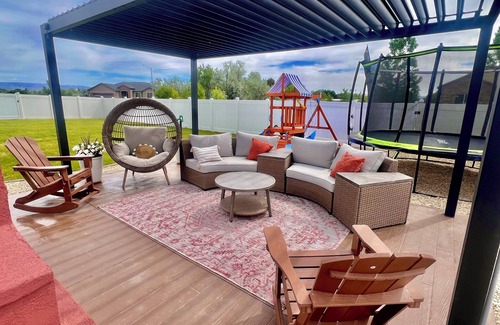 Experience Vernal like a local in this 2-bedroom apartment. The space offers a tremendous blend of comfort and convenience, with a queen bed, twin bed, and sofa bed to accommodate guests. Enjoy the fabulous amenities like AC, high speed WiFi, and a washing machine dryer combo . The 2 bathrooms are equipped with a hairdryer and shower. Our place will help you feel at home while you're traveling in Vernal.electric fireplace,outside gas fire pit wood fire place hot tub trampoline swingset 3 loaner bikes etc