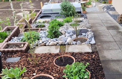 The outdoor area of the "Vreneli" is an oasis of calm, with an English garden with a seating area and a main garden with a sunny terrace that invites you to relax. Surrounded by fragrant herbs and with a view of the picturesque Vrenelis Gärtli, you will find your own personal haven of peace here. Whether you welcome the day with a coffee or enjoy the evening sun - our garden offers you the perfect setting.
