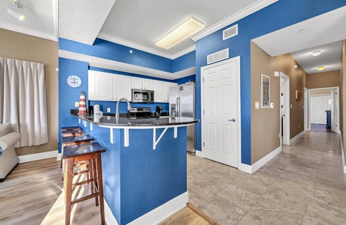 Tidewater 2700 offers floor to ceiling Gulf Front views from the living room, kitchen, and balcony! This spacious, updated 2 bedroom, 2 bath condo features tile flooring and beautiful beachy decor throughout! You will find a fully equipped kitchen with granite counters, all stainless steal appliances, and gorgeous views of the Gulf. There 's a king bed in the master bedroom, a queen bed in the guest bedroom, and a sleeper sofa in the living room, sleeping a total of 6 guests comfortably. You'll also have a washer/dryer in the unit for additional convenience. With stunning 27th floor beachfront views, incredible resort amenities, and located under a mile from Pier Park, you're sure to have a perfect vacation at Tidewater 2700!