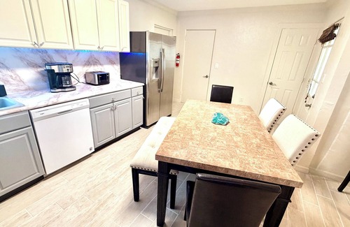 Escape to this relaxing and charming 2-bedroom, 1-bath private home just minutes from the world-famous Siesta Key beaches! This cozy getaway features a full kitchen with appliances, a comfortable living room with a large smart TV, and TVs in both bedrooms for your entertainment. Enjoy the bright coastal décor and peaceful vibes throughout. Bring your furry friend or baby, as long as they are well-behaved, we are pet-friendly.