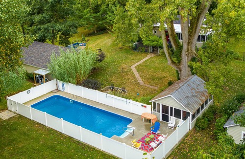 Yes, this Rolling Prairie house has a swimming pool. Check the Facility Overview section for details about the pool and other available facilities.