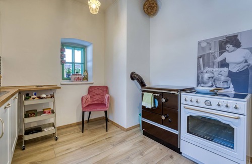 Old single-family house "Hariata", 3 storeys. 3 km from the centre of Vrbovsko, in a sunny position, located by a road. Private: property 1'000 m2 with lawn and trees. Terrace, garden furniture, barbecue. In the house: internet access, central heating system, washing machine, tumble dryer. Parking (for 3 cars) at the house on the premises, public parking. Shop 1.4 km, supermarket 27 km, restaurant 2.3 km, bus stop 1.3 km. Walking paths from the house 1 km. Nearby attractions: Canyon Kamačnik 2.3 km, Nature park Zeleni vir 30 km, National park Risnjak 45 km. Well-known lakes can easily be reached: Lokve 36 km, Sabljaci 28 km. Groups of teenagers on request only. 150 years old house, completely renovated while maintaining its authenticity, using sustainable materials such as wood and retaining the original wooden front door and wooden floors.