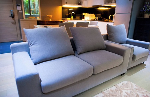 The room is in the quiet area 1th floor. This is a luxury and cozy condo for 4-6 persons. The room comes with engineering wooden floor. The kitchen is black tile flooring. Both living room and bed room comes with black out curtains, for those who enjoy the late wake up. There is a balcony in the room for to enjoy the Silom Bangkok view from there.