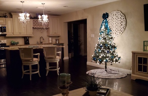 Our vacation rental is a 3 bedroom 3 bathroom pool home located in Apollo Beach, Apollo Beach is a quiet waterfront community that provides year-round boating, fishing and other water activities. The home is renovated with upgraded fixtures and stainless steel appliances and a heated pool with an LED color changing light . The master bedroom has a king size bed, a private en-suite bath with a Jacuzzi tub and separate stand up shower with a sliding door that leads to the lanai with led color changing light bulbs and the pool. The 2nd and 3rd bedroom have queen size beds. There is a 55 in flat screen TV in the living room and there is also a 50 in flat screen in the master bedroom and a 32" tv in bedroom 2 Also included is internet WiFi and cable. Board games and a swing set for the kids. parking inside the garage available, there is a security camera located above the driveway. Enjoy a day at the manatee viewing center just 2.1 miles from the home or just sit back and relax by the water and enjoy the sunsets that all the locals love at the Apollo Beach Nature Preserve just 2.5 miles away. Disney and other attractions in Orlando are just over a hour away and a 30 min drive to Adventure Island and Busch Gardens. Florida Beaches are 30 to 45 minutes south and southwest