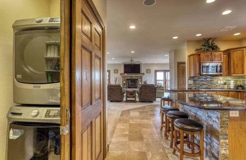 There are 2 spacious bedrooms and 2 full baths on the main level. The master bedroom is fabulous with a gas fireplace separating a comfy sitting area with flat screen TV and an ensuite master bath. The 2nd bedroom upstairs has beautiful queen-size 4-poster bed.