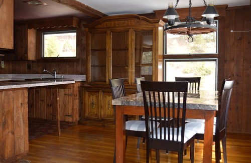 The north wing is a new addition that was built in 2003 and features a large, modern and fully stocked kitchen and spacious living/dining rooms that form a single expansive open-concept space, great for entertaining guests and the entire group can gather around for activities. There are 3 huge bedrooms, each with its own en suite bathroom and can accommodate a small family. The master bedroom on the main floor has a king bed, crib, changing table, jetted tub and its own smart thermostat, great for a family with an infant. The 2 upstairs bedrooms each include a queen bed, twin over full bunk beds, toddler bed and another smart thermostat, ideal for larger families. This wing also features radiant in-floor heating and a humidity controlled air exchanger to keep your toes warm and your throat from drying out in the winter and mini split AC units in every room to keep you cool in the summer. 2 gas fireplaces offer additional heat when needed, burns cleanly and safely and provide a warm ambiance. When it is time to settle in for the night, travel through the great room and retire into the cozy south wing, which is the original section of the the home and features another 4 additional bedrooms: 2 queens and 2 dual bunk beds for a quiet night's rest.