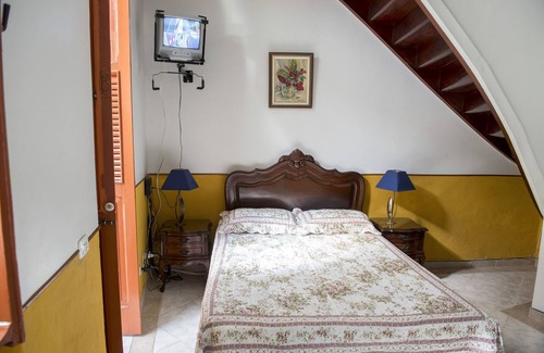 The Historic Cottage, which is on the second floor, has two bedrooms, one living room, one kitchen, one bathroom, a balcony and a mini laundry. The smaller bedroom has a closet, a dressing table, and a mezzanine with a single bed. The larger bedroom has a double bed, a wardrobe and a mezzanine with a single bed. The living room has a small kitchen with a stove with cooktop induction, a refrigerator and a microwave, plus the necessary utensils for the everyday cooking. The living room has a TV, two tables with chairs, and also a mezzanine, where there is another single bed and a dresser.