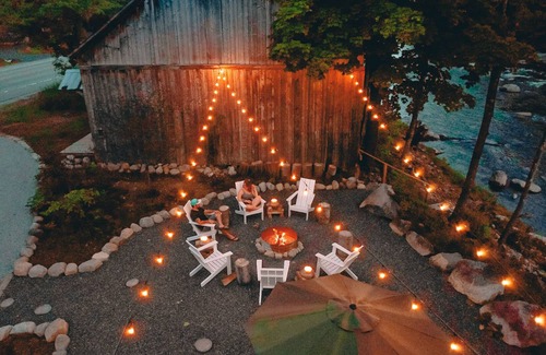 The riverview patio and beer garden is also very special place. Our gravel patio sits on top on a small cliff that looks over the Ausable River. We’ve lined the patio with large boulders. Enjoy the oversized picnic table and the fire pit surrounded Adirondack chairs. The fire pit is a great year round activity! We love crashing here with a beer in our snow gear after some early spring skiing.