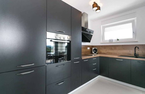 The holiday apartment is located in an apartment house built in 2016 and is furnished in a typical country style. The property is located on the outskirts. Also due to the view over the sea from the property and its sunny location the domicile is popular.LocationMalinska, district Vantačići. The landlord does not live in the house or on the property. Parking (for 1 car) is available on the property. Specialair conditioning.Facilities: washing machine. TV reception takes place via satellite. Dogsnot allowed. DistancesShopping 500 m, restaurant 200 m, town center 1,6 km. discotheque in Krk 1,6 km. airport in Omišalj 18 km. In summer: Adriatic Sea 300 m in Vantačići (beach 300 m in Vantačići featuring stones and bathing plateaus). DivisionHoliday apartment, 1 floor, 3 rooms (including 2 bedrooms), 70 sqm, in total 5 beds (including 1 additional bed). RoomThe entrance to your holiday apartment is located on the 2nd floor and leads over an internal staircase. 2 bedrooms each with 1 double bed. Living/bedroom with 1 additional bed on double sofa bed, TV, dining area (4 seats) and access to the balcony (covered, garden furniture, 1 table, 4 chairs). Kitchen in the living & bedroom with dining area (4 seats), electric stove (4 plates), oven, dishwasher, fridge, electric kettle and access to the balcony. Bathroom with washing machine, shower, 1 washbasin, WC, bidet, hairdryer and window. Terms of lease and pricesIncluded in the pricedish towels, air conditioning, parking place, electricity, gas, water, bed linen, hand towels. Side costs-Additionally(Payable when booking)/registration fee obligatory 6,30 € per person per stay. final cleaning obligatory 125 € per object per stay. local tax.Deposit:No deposit.