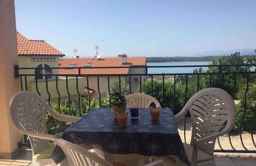 The holiday apartment is located in an apartment house and is furnished in a functional style. The property is located at the end of a cul-de-sac road, in a busy environment, in a residential area. Also due to the view over the sea from the property and its quiet and sunny location at the water the domicile is popular. Available for shared use: barbecue facilities.LocationKlimno. The holiday apartement is located on a enclosed garden plot, bordered by a fence. The landlord does not live in the house or on the property. In the same house holiday apartment KRK DOB 066 are (4 persons) and KRK DOB 067 (4 people). Access is via a side road (rubble or gravel). Parking (for 1 car) is available on the property. Specialair conditioning.Facilities: internet access (WLAN) and washing machine. TV reception takes place via satellite. Dogsnot allowed. DistancesShopping 450 m, restaurant 450 m, town center 450 m. doctor in Dobrinj 6 km. pharmacy, bank each 12 km in Malinska. airport in Omišalj 15 km. railway station, cinema each 45 km in Rijeka. Children's playground 500 m. In summer: Adriatic Sea 30 m in Klimno (beach 30 m in Klimno featuring gravel, rocks and bathing plateaus). DivisionHoliday apartment, 1 floor, 2 rooms (including 1 bedroom), 40 sqm, in total 4 beds (including 2 additional beds). RoomThe entrance to your holiday apartment is located on the 1st floor