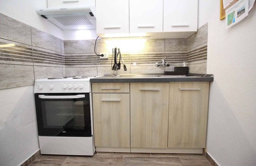 The holiday apartment is located in an apartment house and is furnished in a modern and functional style. The property is located on the outskirts. Available for use: barbecue facilities and terrace.LocationBaška, district Zarok. The landlord does not live in the house or on the property. In the same house there are holiday flats KRK BAS 348 (4 persons), KRK BAS 349 (6 persons), KRK BAS 350 (4 persons) and holiday rooms without cooking facilities KRK BAS 351 (2 persons) Access is via a side road (asphalted). Parking (for 1 car) is available on the property. Specialair conditioning.Facilities: internet access (WLAN). TV reception takes place via satellite. Dogsallowed, EUR 24.00/pet per day. DistancesShopping 250 m, restaurant 200 m, town center 1000 m. The nearest public transport stop is 14,2 km away. pharmacy, bank each 1000 m. discotheque in 12,3 km. sauna in 15,1 km. airport in 21,6 km. cinema in 22,9 km. doctor in 700 m. Children's playground 200 m. In summer: Adriatic Sea 250 m in Baška (beach 250 m in Baška featuring gravel). DivisionHoliday apartment, 1 floor, 2 rooms (including 1 bedroom), 40 sqm, in total 4 beds (including 2 additional beds). RoomThe entrance to your holiday apartment is located on the ground floor. Living room with 2 additional beds on couch/sofa and TV. Bedroom with 1 double bed and access to the terrace (10 sqm). Cooking nook in the living room with electric stove, oven, fridge (icebox), microwave, coffee machine and access to the terrace (10 sqm). Bathroom with shower, 1 washbasin and WC. Terms of lease and pricesIncluded in the priceinternet access, dish towels, air conditioning, parking place, electricity, water, final cleaning, bed linen, hand towels, Bed linen (weekly change), hand towels (weekly change), Wireless Internet access. Side costs-Additionally(Payable when booking)/additonal fee for short-term stays (less than 4 nights) obligatory 30% per stay.Costs on the spot:/Obligatory:registration fee 5 € per person per stay.Deposit:No deposit.