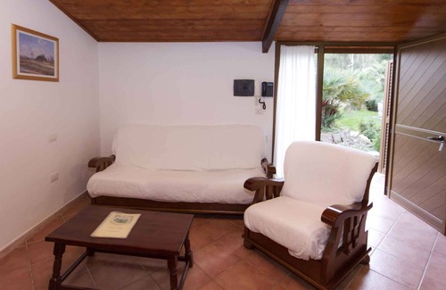 The holiday apartment is located in a terraced house or a semi-detached house, was renovated in 2005 and is furnished in a rustic and typical country style. Also due to its quiet and sunny location at the edge of the forest the domicile is popular. Available for use: sunbathing lawn, parasol, sun lounger, children's playground, swing, barbecue facilities, terrace, campfire site and courtyard. The availability of crickets available with us.LocationAlghero. The holiday apartement is located on a open enclosed garden plot with meadow and trees. The landlord does not live in the house or on the property. Access is directly from the main road (asphalted). Parking is available on the property. Specialair conditioning.Facilities: children's toys, baby cot, high chair, internet access (WLAN), safe, iron and washing machine. TV reception takes place via satellite.For your safety, the accommodation is equipped with CO2 detector, smoke detector and fire extinguisher. PoolAll pools are available for shared use. Outdoor pool (usable from early April to end of October, 6 m x 12 m, depth 2,60 m). Dogsallowed, EUR 15.00/pet per day. DistancesShopping 3 km, restaurant 100 m, town center 14 km. Alghero: railway station 11 km and discotheque, cinema each 14 km. Fertilia: doctor, pharmacy, bank each 6 km. airport 9 km. In summer: Rada di Alghero 7 km in Fertilia (beach 7 km in Fertilia featuring sand). Fertilia: golf 4,8 km, dog beach 7 km and tennis 9 km. DivisionHoliday apartment, 1 floor, 2 rooms (including 1 bedroom), 70 sqm, in total 5 beds (including 2 additional beds), on request additionally 1 child up to 2 years in a baby cot. RoomThe entrance to your holiday apartment is located on the ground floor, is at ground level and leads directly into the living room.Ground floor: Bedroom (20 sqm) with 1 double bed (Queensize), 1 single bed and access to the terrace. Living/bedroom (23 sqm, walk-through room) with 1 additional bed on couch/sofa, TV, dining area (5 seats) and access to the terrace (garden furniture, 1 table, 4 chairs, parasol). Higher ground floor: Bathroom with washing machine, shower, 1 washbasin, WC, bidet and hairdryer. Cooking nook in the living & bedroom (walk-through room) with TV, dining area (4 seats), gas stove (3 flames), electric stove (induction stove), oven, fridge (icebox) and washing machine. Terms of lease and pricesIncluded in the priceOutdoor pool, internet access, air conditioning, parking place, final cleaning, local tax (under 12 years), hand towels, sunloungers, bed linen (first usage), hand towels (first usage), Wireless Internet access. Side costs-Costs on the spot:/Obligatory:local tax by local tariff (if charged).On request:bathing towels 5 € per person per change. baby cot – please order at booking 20 € per bed per stay.Deposit:EUR 300,-/object.