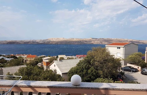 The holiday apartment is located in a detached single-family home and is furnished in a modern style. The property is located on the outskirts. Also due to the view over the sea from the property and its quiet and sunny location the domicile is popular. Available for shared use: garden shower, barbecue facilities, terrace, pavilion and garden furniture.LocationKarlobag. The holiday apartement is located on a 1000 sqm enclosed garden plot with meadow, flowers, shrubs and trees, bordered by a fence and a hedce. The landlord does not live in the house or on the property. Access is via a path (asphalted). Parking is available on the property. Specialair conditioning.Facilities: internet access (WLAN). TV reception takes place via satellite. PoolAll pools are available for shared use. Outdoor pool (usable from early May to early October, 7 m x 5 m, depth 1,5 m). Dogsnot allowed. DistancesShopping 200 m, restaurant 200 m, town center 200 m. Karlobag: pharmacy 200 m, indoor swimming pool, sauna, discotheque, doctor, bank each 300 m. thermal bath 500 m. airport in Zadar 800 km. In summer: Adriatic Sea 300 m in Karlobag (beach 300 m in Karlobag featuring sand, gravel, stones, rocks and bathing plateaus). dog beach, tennis, fishing, diving, water sports, boat rental, boat launch each 300 m in Karlobag. DivisionHoliday apartment, 1 floor, 3 rooms (including 2 bedrooms), 70 sqm, in total 6 beds (including 2 additional beds). RoomThe entrance to your holiday apartment is located on the ground floor. Bedroom with 2 single beds. Bedroom with 1 double bed and access to the terrace (covered, garden furniture). Living/bedroom with 2 additional beds on couch/sofa, sitting area, TV, dining area and access to the terrace (covered, garden furniture). Kitchen in the living & bedroom with dining area, electric stove (4 plates), oven, extractor hood, dishwasher, fridge (icebox), microwave, coffee machine, toaster, electric kettle and access to the terrace. Bathroom with shower, 1 washbasin, WC and hairdryer. Terms of lease and pricesIncluded in the priceinternet access, parking place, electricity, gas, water, final cleaning, bed linen, hand towels, Wireless Internet access. Side costs-Additionally(Payable when booking)/local tax.Costs on the spot:/On request:Air conditioning - please order at booking 5 € per room per day.Deposit:No deposit.