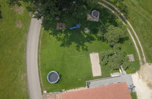 The holiday home Ferme d' Alma, located in the idyllic and personal Jura village of Seleute, offers many extras and amenities in addition to exclusive furnishings. In the two-storey "Classic" holiday flat, you can stay with a total of 13 people in 4 lovingly furnished bedrooms and freshen up in the bathrooms on both floors. The kitchen on the ground floor offers everything you need to fully cater for all guests. The adjoining living/dining room with a large table and corner bench also invites you to relax and unwind with its cosy furnishings. In the cellar room, which is directly accessible through the kitchen, you will find various games and leisure equipment for games and sports (bicycles + helmets, table football, table tennis, etc.). In the large garden you will find everything you need, from a barbecue area to play and sports areas. An outdoor whirlpool and a top modern wellness room are also available on request (not included in the price). For leisure activities, we also recommend the nearby historic town of St. Ursanne, which is just 6km away, where you can enjoy swimming, canoeing and rubber dinghy trips, discovery tours or simply a cosy picnic in the Doubs river flowing through the town.