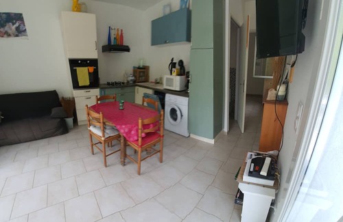 The 49 m² Gîte Hanna en Luberon offers the ideal space for a relaxing holiday. The living room has a double sofa bed, which can comfortably accommodate up to four people. Facilities include air conditioning, fan, washing machine, children's books and toys. A cot and high chair are also available, perfect for families.