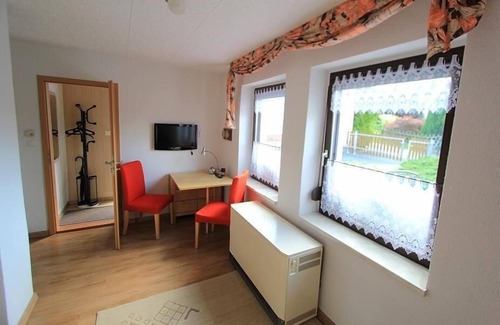 This beautiful, approx. 40 m² holiday home is located in the village of Rempesgrün in Auerbach. The entire property is fenced and overgrown. There is an oasis of peace with a swing on the property. A large freshwater pool for shared use in the landlord's nearby property invites you to linger. A parking space is available for your car. The holiday home itself is lovingly furnished and equipped with every comfort. You can enjoy your holiday on the more than 12 m² terrace. You will rarely find more natural tranquillity and idyll, and a swimming pool is located on the landlord's property and can be used in the summer months. Pets can be brought along on request.Facilities:The house has a porch as an entrance with a cloakroom. The living room with semi-integrated fully equipped kitchen is modern and friendly furnished and equipped with flat screen TV, satellite TV and radio. In the bedroom there is a modern and comfortable double bed and a more than adequate large wardrobe, the kitchen is well equipped with hob, fridge & freezer, microwave, coffee maker and all the utensils to make your holiday comfortable and uncompromising. The bathroom has a shower, washbasin and toilet. All rooms have windows. Even in colder temperatures you will feel comfortable, as the house is equipped with heating. Further equipment includes: Barbecue with accessories, sun loungers and a large parasol as well as a two-piece settee with dining table for the terrace. An idyllic embedded swing is also part of the equipment. Towels, bed linen as well as crockery and everything necessary and useful is available.the cottage is suitable for 2 people and a pet.in the cold season you should contact us at least 2 days before arrival, because we have to preheat, so that you feel comfortable with us.unfortunately, the cottage does not have a telephone and internet connection. You are dependent on your own mobile data transfer.