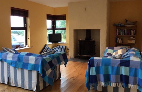 The dining table seats up to 8 people and offers lovely views through the full-length windows down towards Kenmare River. The sitting room is cosy with an open fire and TV (local channels only). Wifi is available to all guests during their stay.