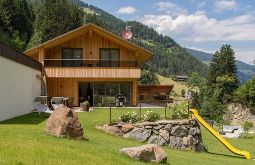 The owners decided to build this newly built house with natural and sustainable materials. The chalet and interior were designed with great attention to detail and to tradition, with a hint of luxury. The chalet provides ample space for up to eight people and is therefore an ideal place to spend your holiday with the whole family or with friends. The holiday house built in 2015 provides 170m² of living space. The ground floor has a living area flooded with daylight, comprising a comfortable living room, a cosy dining room and a modern kitchen space. There are also a guest WC and wardrobe space where the stairs go up to the upper floor, which has a hallway providing access to the three double bedrooms and two bathrooms. The lower floor has a private little wellness area and a laundry room with a washing machine and dryer. The three bedrooms are each furnished with an indirectly illuminated, comfortable double bed 200cm wide, under a sloped ceiling with a minimum height of 1.60m. Each bedroom also has a wardrobe, a desk and a flatscreen TV with satellite channels. One bathroom is fitted with a shower cubicle, a bath and a bidet, while the second is a shower room. Both have a WC. The open kitchen with the generous cooking island invites you to cook together: the gas hob and the raised oven are a dream for amateur cooks. A dishwasher, a fridge with a freezer compartment and the usual small electrical appliances are provided. You can sit at the solid dining table on a bench and four traditionally made wooden chairs. During your meals you can enjoy an extensive view of the natural surroundings through the floor-to-ceiling, almost continuous glass front. You go past the fireplace stove, which exudes pleasant warmth in winter, to the living room with a corner sofa for relaxing after a day trip. There is a sauna with relaxation loungers downstairs.