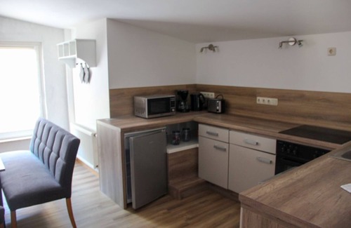 Our apartments are modern and lovingly furnished. Each apartment has a spacious and bright living and dining area with a lounge corner and mostly a fireplace. Free WiFi and LAN is available in all apartments. A garden at the house with a barbecue area invites you to relax. We have been welcoming guests in a quiet side street since summer 2019.