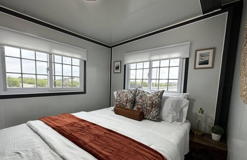 Discover your own haven in this cozy BoxHouse located in the heart of oil country. It exudes an inviting atmosphere, enveloping you in privacy and comfort. In this BoxHouse you can cook like a chef in the full kitchen, unwind in the relaxing living area, rejuvenate and cleanse in your own private bathroom, and at the end of your day you can retreat to your secluded sleeping quarters.