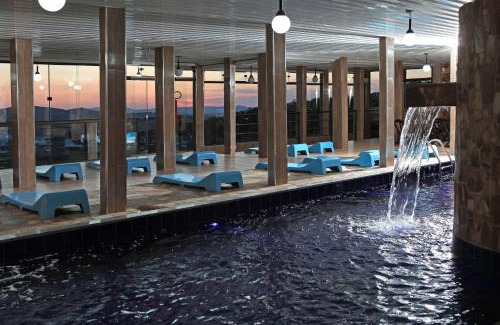 Featuring mountain views, Hotel Alpha Ville Chalés in Conceição da Ibitipoca offers accommodations, a rooftop pool, an indoor pool, a garden, a bar, and barbecue facilities. This property offers access to a balcony and free private parking. The accommodation features a sauna, hot spring bath, family-friendly restaurant, and free Wifi. At the farm stay, each unit has a desk, a TV, a private bathroom, bed linen, and towels. Some rooms include a fully equipped kitchen with a stovetop and kitchenware. Buffet and continental breakfast options with fruit, juice, and cheese are available. There is a snack bar and lounge. A children's playground is also available for guests at the farm stay.
