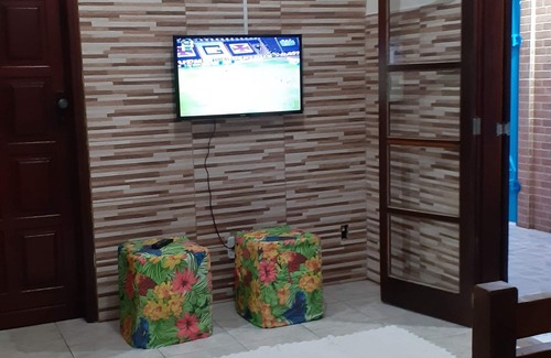 The property has 1 double bedroom with fan and closet, 1 suite with 2 bunk beds and 60 cm wall fan, ante room with 32 "tv and 1 table, an environment with a large sofa bed for 2 people and wall fan 60cm and 1 extra double mattress.Kitchen with stove, closet and utensils, pantry with fridge and table.Service area with washing machine, balcony with hammock, backyard with shower and barbecue.