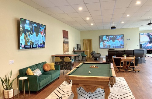 Bring out the performer in you by singing your heart out on our bluetooth karaoke system, ramp it up with a competition at the mike! Sports fan....? Kick back on our 6 person Italian leather luxury theatre seating with several perks to enjoy, such as recliners, massage, electric positioning for that perfect comfort level, LED lighting, USB plug ins and even head rest electric adjustment options. Enjoy our NFL package on our newly installed huge 111" x 120" screen by "Innovations Zero Edge Pro Slate 16:9 Ratio Fixed". No game is limited!!! Watch 2 different games at once or the same game on both the projection screen and our brand new 86" Smart TV screen. Movies are your thing, enjoy every movie channel you can think of!!! DIm the lights and create that movie theatre experience! We will pop the popcorn!