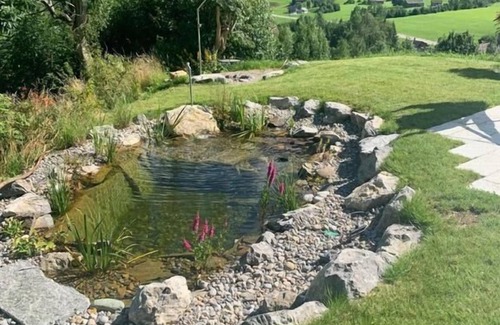 Garden: Large terrace 40 m2, natural swimming pond, barbecue area, lawn, further seating area (approx. 10 m2) with unobstructed view of the Churfirsten, the Speer and the valley. Garden furniture available.